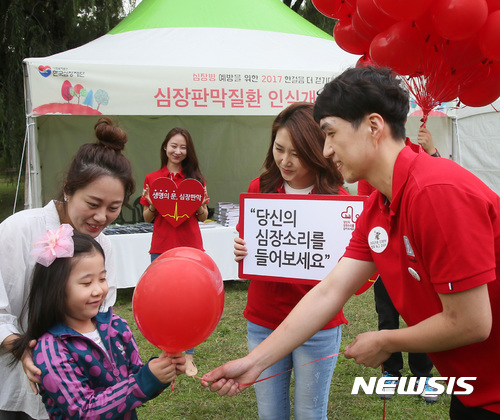 【서울=뉴시스】에드워즈라이프사이언시스코리아 임직원들이 23일 서울 송파구 올림픽공원에서 열린 ‘2017 심장병 예방을 위한 한걸음 더 걷기대회(주최 한국심장재단)’에서 심장 모양의 풍선을 시민에게 나누며 심장판막 건강에 대한 관심을 환기하는 ‘당신의 심장소리를 들어보세요’ 캠페인 활동을 펼치고 있다. 2017.09.23. (사진=에드워즈라이프사이언시스코리아 제공)