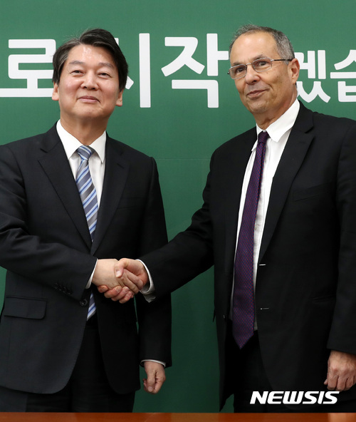 【서울=뉴시스】박영태 기자 = 안철수 국민의당 대표가 25일 오후 서울 영등포구 여의도 국회 국민의당 회의실에서 하임 호센 이스라엘 대사를 예방, 악수를 나누고 있다. 2017.10.25.