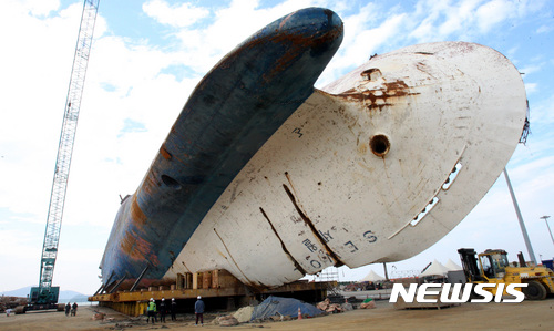 【목포=뉴시스】신대희 기자 = 26일 오후 전남 목포신항만에서 세월호 현장수습본부와 국방부 유해감식단 등이 선체 수색 작업을 벌이고 있다. 2017.10.26. [email protected]