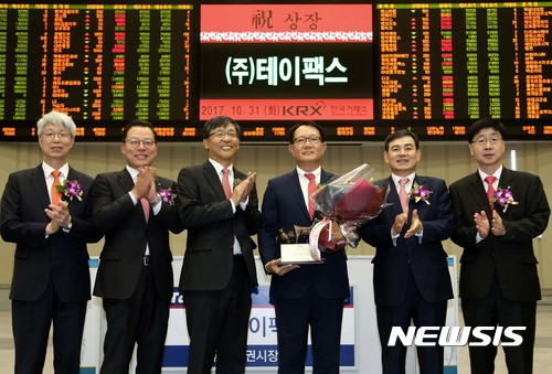 【서울=뉴시스】 한국거래소 유가증권시장본부는 31일 오전 서울 여의도 한국거래소 서울사옥 홍보관에서 플라스틱 제품 생산업체인 테이팩스의 유가증권시장 신규상장기념식을 개최했다.