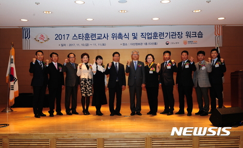 【천안=뉴시스】이종익 기자 = 충남 천안의 코리아텍은 고용노동부와 10일 오후 교내에서 직업훈련 현장에서 전문역량을 갖추고 탁월한 성과를 거둔 직업훈련교사의 자긍심을 높이기 위해 마련된 '2017 스타훈련 교사' 10명을 선발했다. 2017.11.12. (사진=코리아텍 제공)