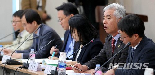 【서울=뉴시스】박주성 기자 = 김홍길 전국한우협회 회장이 22일 오전 서울 양재동 aT센터 세계로룸에서 열린 '한미 FTA 개정관련 농축산업계 간담회'에서 한우 농가와 관련해 발언을 하고 있다. 2017.11.22.