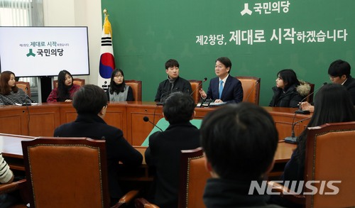 【서울=뉴시스】홍효식 기자 = 국민의당 안철수 대표가 24일 오후 서울 여의도 국회에서 당대표실에서 전남대학교 정치외교학과 학생들과 간담회를 하고 있다. 2017.11.24.