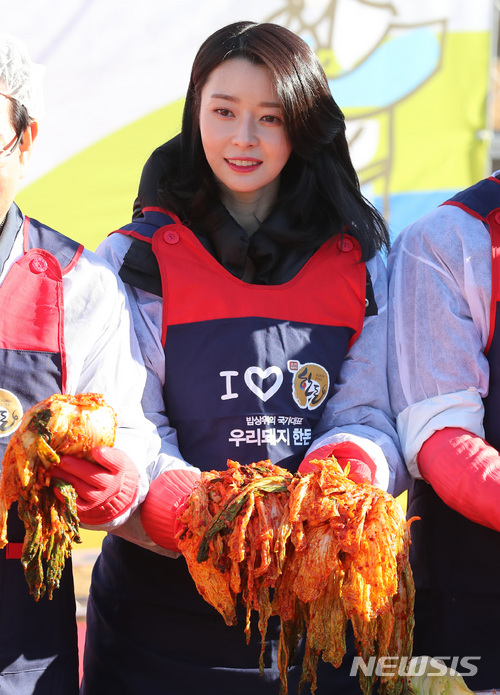 【서울=뉴시스】이영환 기자 = 1일 오전 서울 여의도 국회 생생텃밭에서 열린 '국회 생생텃밭과 함께하는 한돈 김장나눔' 행사에 참석한 한돈 홍보모델 헬로비너스 나라가 포즈를 취하고 있다.