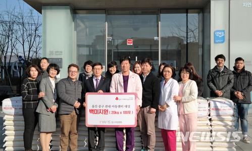 【울산=뉴시스】조현철 기자 = 맘스여성병원(원장 신규식)은 19일 중구 지역아동센터 7곳에 백미 100포(20㎏ 400만원 상당)를 울산사회복지공동모금회(회장 장광수)를 통해 지원했다. 2017.12.19. (사진=울산사랑의 열매 제공)