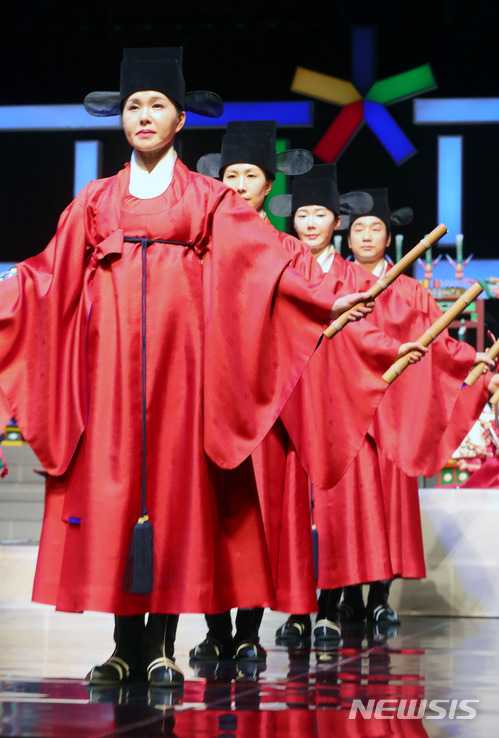 【서울=뉴시스】배훈식 기자 = 국립국악단이 2일 오후 서울 서초구 국립국악원 예악당에서 2018 평창 동계올림픽 성공 개최 기원 종묘제례악 프레스 리허설을 하고 있다. 2018.02.02.