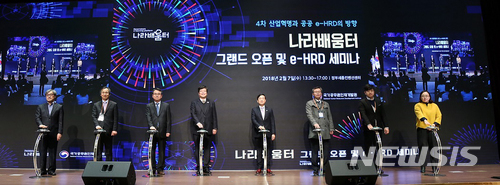 【서울=뉴시스】 7일 정부세종컨벤션센터에서 열린 국가공무원인재개발원 나라배움터 그랜드오픈을 기념한 선포식과 공공인재개발 세미나에서 내빈들이 기념촬영을 하고 있다.