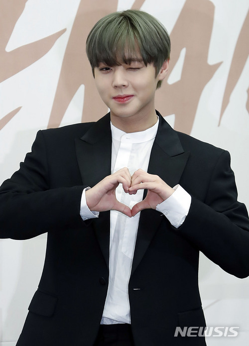【서울=뉴시스】최동준 기자 = 그룹 워너원 박지훈이 19일 서울 상암동 스탠포드호텔에서 열린 새 미니앨범 '0+1=1(I PROMISE YOU)' 발표 기자회견에서 포즈를 취하고 있다. 2018.03.19.