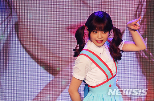 【서울=뉴시스】박주성 기자 = 21일 오후 서울 마포구 서교동 스테이라운지에서 일본 AV(성인 배우) 출신의 미카미 유아, 사쿠라 모코, 마츠다 미코로 구성된 걸그룹 '허니팝콘'이 쇼케이스를 진행해 사쿠라 모코가 포즈를 취하고 있다. 2018.03.21.