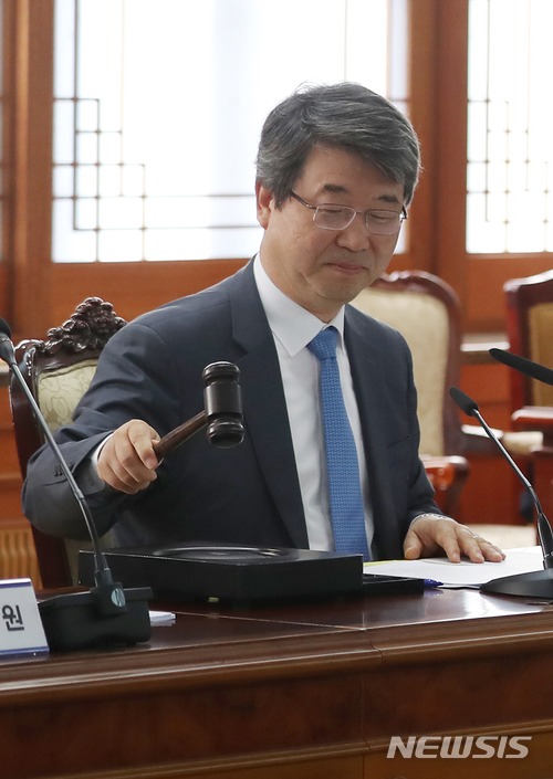 【서울=뉴시스】고승민 기자 = 27일 오후 정부서울청사에서 열린 규제개혁위원회에서 김지형 민간위원장이 회의를 시작하고 있다.