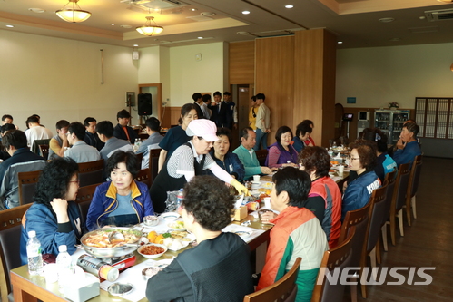 【천안=뉴시스】이종익 기자 =충남 천안의 코리아텍 총학생회와 생활관(기숙사) 자치회는 8일 교내에서 어버이날을 맞아 미화원 등 어르신 직원 50여명에게 떡과 점심 식사를 제공했다. 2018.05.08. (사진=코리아텍 제공)
