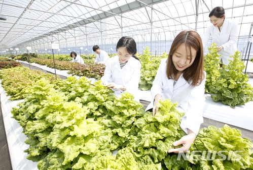 【서울=뉴시스】 9일 오전 전주시 완산구 농촌진흥청 농업유전자원센터에서 산학연 합동 상추 현장 평가회를 앞두고 연구원들이 31개 나라에서 수집된 다양한 상추를 살펴보고 있다. 2018.05.09. (사진=농촌진흥청 제공)