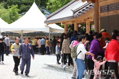 【정선=뉴시스】김태식 기자 = 불기 2562년 부처님 오신날인 22일 강원 정선군 정암사에서 많은 신도들이 참석한 가운데 봉축법요식이 열리고 있다. 2018.05.22.