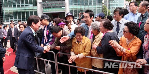 【서울=뉴시스】고범준 기자 = 안철수 바른미래당 서울시장 후보가 22일 서울 종로구 견지동 조계사에서 열린 불기 2562년 부처님 오신날 봉축법요식에 참석하며 불자들과 인사를 나누고 있다. 2018.05.22.