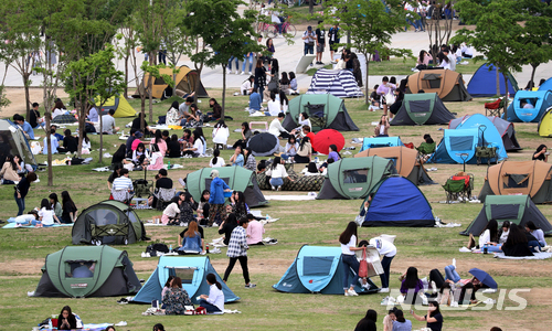 【서울=뉴시스】이종철 기자  = 부처님 오신 날인 22일 오후 날씨가 흐린가운데 서울 여의도 한강시민공원을 찾은 시민들이 휴일을 즐기고 있다. 2018.05.22.