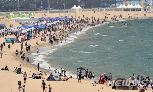 해운대해수욕장 개장 첫 휴일 피서객 '북적'