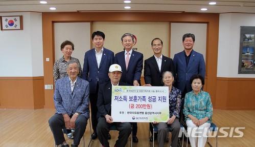 【울산=뉴시스】조현철 기자 =한국자유총연맹 울산광역시지부(지부장 박민호)는 4일 울산보훈지청(지청장 한국성) 회의실에서 호국보훈의 달을 맞아 저소득 보훈가족 4명에게 성금 50만원씩을 전달했다. 2018.06.04. (사진=울산보훈지청 제공)