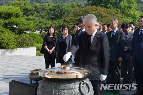 【서울=뉴시스】 박종환 한국자유총연맹 총재가 5일 서울 동작구 국립서울현충원을 참배, 분향하고 있다. 2018.06.05. (사진=한국자유총연맹 제공)