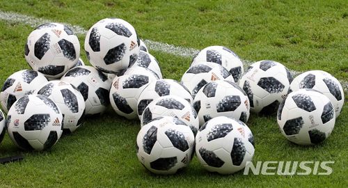 【레오강(오스트리아)=뉴시스】고범준 기자 = 5일 오후 전지훈련 캠프인 오스트리아 레오강 스타인베르그 스타디온에서 열린 공식 훈련에서 2018 러시아월드컵 공인구 텔스타 18이 그라운드에 놓여 있다.