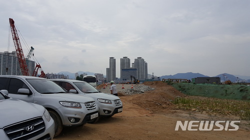 【창원=뉴시스】강경국 기자 = 경남 창원시 마산합포구 월영동과 가포동 일원에 조성 중인 마산해양신도시의 현 공정률이 73%를 기록한 가운데 공사 현장에 건설 장비와 차량들이 보이고 있다. 2018.06.19.