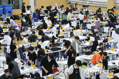 【서울=뉴시스】이영환 기자 = 21일 오전 서울 노원구 삼육대학교 체육관에서 열린 전국 고교생 디자인·미술 실기대회에 참가한 학생들이 그림을 그리고 있다.
