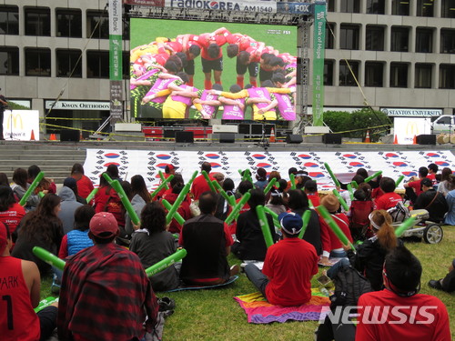 월드컵 랭킹 1위의 독일 군단을 이긴다는 것은 허황한 꿈 같지만 우리의 대표팀에 기대하고 LA 원근 각지에서 몰려온 동포들의 모국 사랑 응원팀들은 아침 7시에 시작된 중계를 출근 시간 임에도 흩어지지 않고 윌셔 잔디광장 축구 중계를 끝까지 지켜보며 응원을 했다