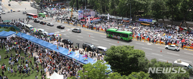 세종대로 사이에 두고..'퀴어축제와 반대집회'