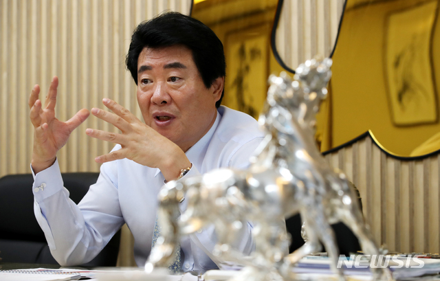 【성남=뉴시스】고범준 기자 = 백병하 한국유니온제약 대표이사가 16일 오후 경기도 성남시 분당구 한국유니온제약 본사에서 코스닥 상장을 앞두고 뉴시스와 인터뷰를 하고 있다. 2018.07.25.