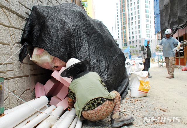 "태풍에 날아갈라" 폐자재 덮는 건설현장