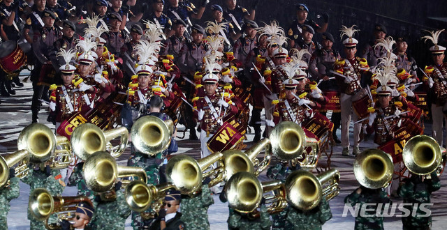 【자카르타(인도네시아)=뉴시스】추상철 기자 = 2018 자카르타-팔렘방 아시안게임 폐회식이 열린 2일(현지시각) 오후 인도네시아 자카르타 겔로라 붕 카르노(GBK) 메인 스타디움에서 마칭 밴드 대 아카데미 공연이 펼쳐지고 있다. 2018.09.02.