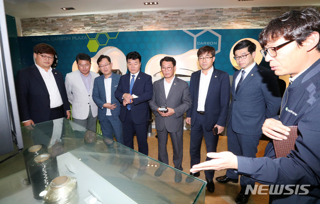 【전주=뉴시스】윤난슬 기자 = 전주시의회 문화경제위원회가 6일 전북 전주시 덕진구에 위치한 한국탄소융합기술원과 탄소기업체 등을 방문해 기업의 애로사항을 청취하고 있다. 2018.09.06.(사진=전주시의회 제공)