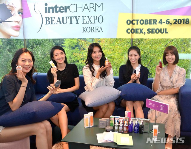 【서울=뉴시스】최동준 기자 = 6일 서울 강남구 비아인키노 청담 쇼룸에서 열린 '2018 인터참뷰티엑스포코리아' 홍보대사 위촉 및 콜라보레이션 킥오프 행사에서 홍보대사로 위촉된 2018 미스코리아 7인이 참가기업 '메디안스'의 제품을 시연하고 있다. 메디안스는 '2018 인터참뷰티엑스포코리아'에서 히스토랩, 더마코스메틱, 프라우드메리, 아오와 등 다양한 브랜드를 선보일 예정이다. 2018.09.06. (사진=인터참뷰티엑스코리아 제공)