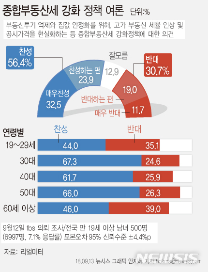 [그래픽]종합부동산세 강화 찬성 56.4% (리얼미터)