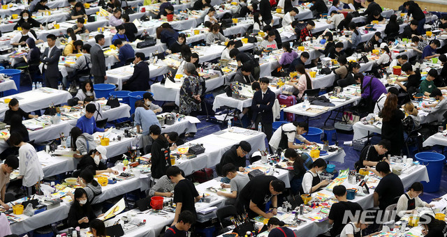 【서울=뉴시스】추상철 기자 = 30일 오전 서울 노원구 삼육대학교에서 수험생들이 2019학년도 대학 수시모집 미술 실기시험을 치르고 있다. 2018.09.30.