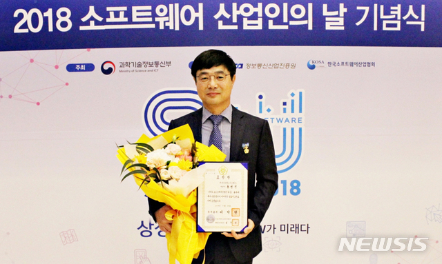 【서울=뉴시스】 레몬헬스케어(대표 홍병진)는 지난 26일 과학기술정보통신부에서 주최한 ‘2018년 SW산업인의 날 기념식’에서, 홍병진 대표가 소프트웨어 산업발전 유공자로 선정되어 국무총리 상을 수상했다고 27일 밝혔다. 사진은 레몬헬스케어/데이타뱅크시스템즈 홍병진 대표이사가 기념촬영 하는 모습. 2018.11.27. (사진=레몬헬스케어 제공)