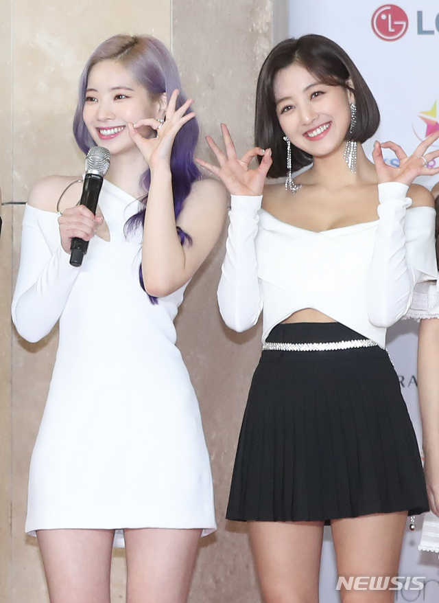 【인천=뉴시스】조수정 기자 = 그룹 트와이스 다현, 지효(오른쪽)가 2018 아시아 아티스트 어워즈(2018 AAA)가 열린 28일 인천 중구 파라다이스시티에서 포즈를 취하고 있다. 2018.11.28. [email protected]