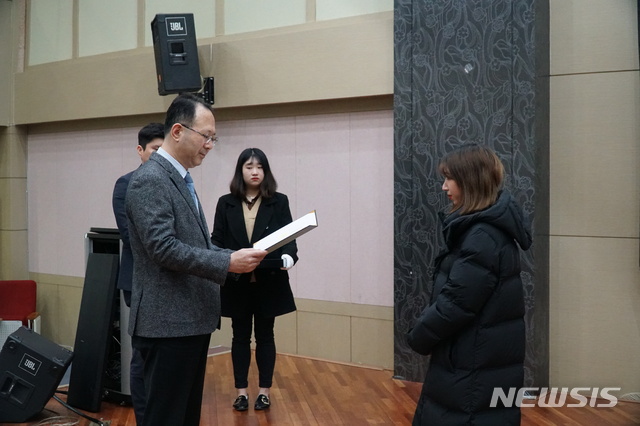 【포항=뉴시스】강진구 기자 = 경북 포항대학교(총장 한홍수)는 28일 오후 교내 창의인성교육센터에서 ‘2018학년도 포항대학교 30’ 감사글 공모전 시상식’을 개최했다.30’ 감사글 공모전은 인성함양 프로그램의 일환으로 평소 주변인에게 표현하지 못했던 존경과 감사의 마음을 단문 30개의 문장으로 작성하는 행사로 접수된 260여개의 작품들을 심사해 이번에 이들 중 우수한 작품을 선정해 시상했다.2018.11.29.(사진=포항대학교 제공)