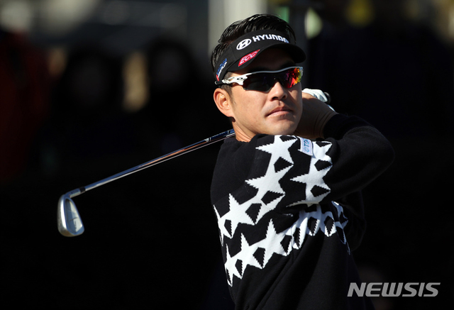 【서울=뉴시스】 30일 일본 도쿄 요미우리컨트리클럽에서 열린 일본 시리즈 최종전 제55회 JT컵 2라운드 8번홀에서 김형성이 아이언티샷을 하고 있다. 2018.11.30. (사진=KPGA 제공)