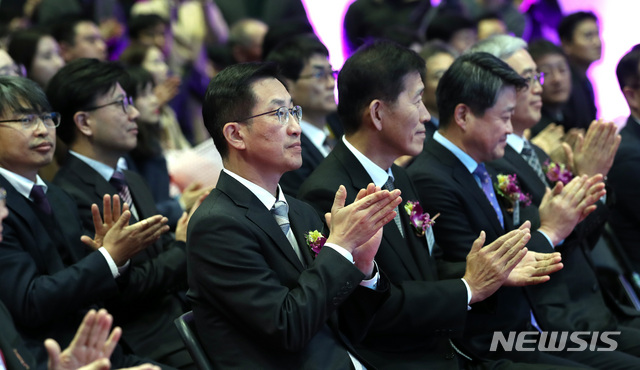 【서울=뉴시스】전진환 기자 = 2018 대한민국 산업기술 R&D대전 대한민국 기술대상 시상식이 열린 5일 오후 서울 삼성동 코엑스 전시장에서 산업통상자원부 박건수 산업정책실장,  한국산업기평가관리원 성시헌 원장 등 참석자들이 박수치고 있다. 2018.12.05.