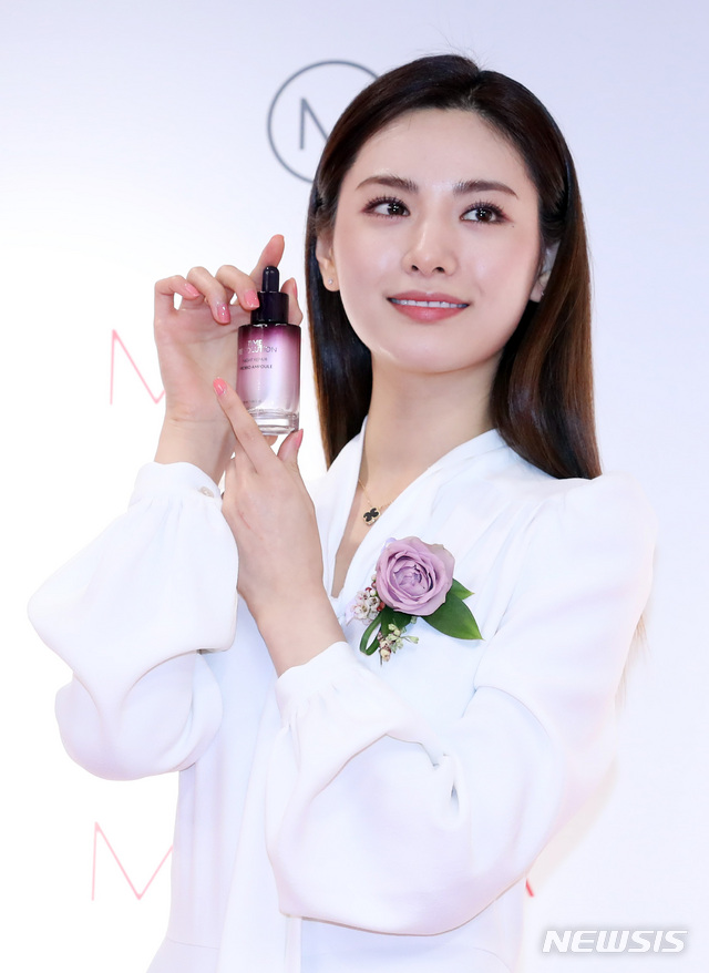 【서울=뉴시스】이영환 기자 = 13일 오후 서울 중구 명동 미샤 메가 스토어에서 열린 오픈식에서 미샤 모델인 가수 겸 배우 나나가 포토타임을 하고 있다. 2018.12.13.