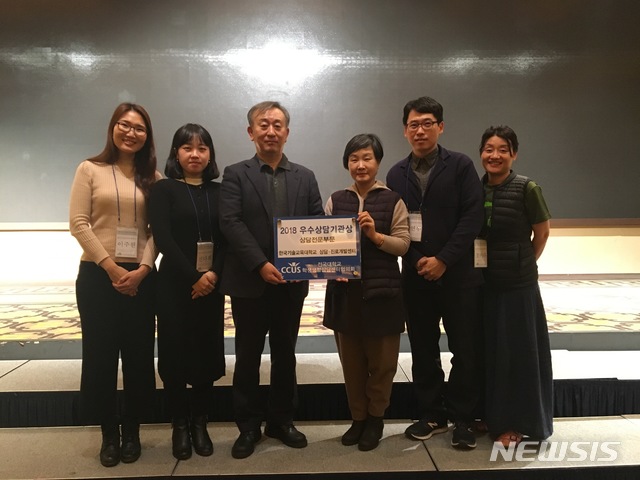 【천안=뉴시스】이종익 기자 = 충남 천안의 코리아텍 상담·진로개발센터(센터장 이제경)가 19일 제주도에서 열린 '전국 대학교 학생생활 상담센터 협의회' 시상식에서 '우수 상담기관 – 상담전문 부문'에 선정됐다. 2018.12.19. (사진=코리아텍 제공)