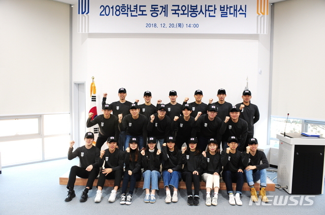 【천안=뉴시스】이종익 기자 = 충남 천안의 코리아텍 학생들이 20일 오후 교내에서 24일부터 내년 1월4일까지 라오스의 루앙프라방 직업기술대학과 뻥캄중고등학교 학생을 대상으로 진행하는 해외봉사를 앞두고 발대식을 열고 있다. 2018.12.20. (사진=코리아텍 제공)