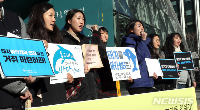 돌고래'태지' 위탁계약 연장 촉구하는 동물권단체