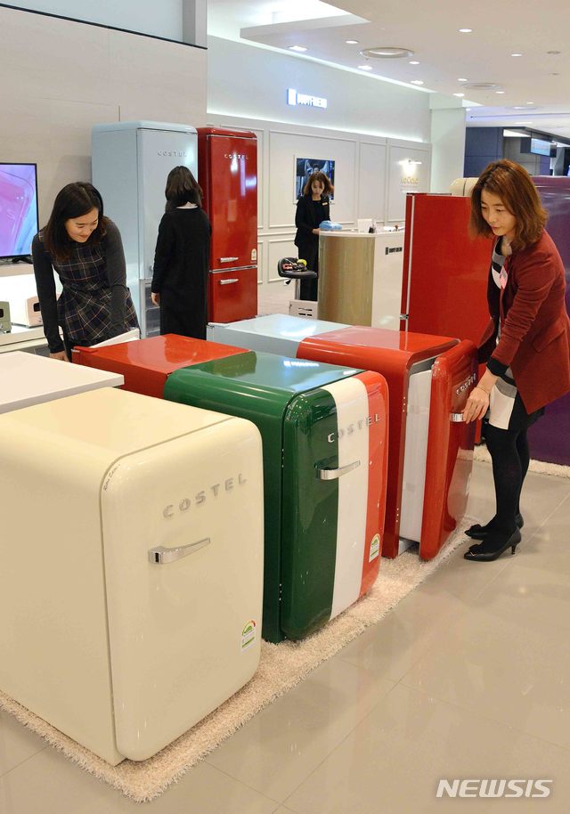 【부산=뉴시스】 하경민 기자 = 부산 롯데백화점 광복점은 9층 가전매장에 국내 브랜드로 빈티지 클래식 레트로 냉장고를 선보이는 매장이 문을 열었다고 8일 밝혔다. 2019.01.08. (사진=롯데백화점 제공)