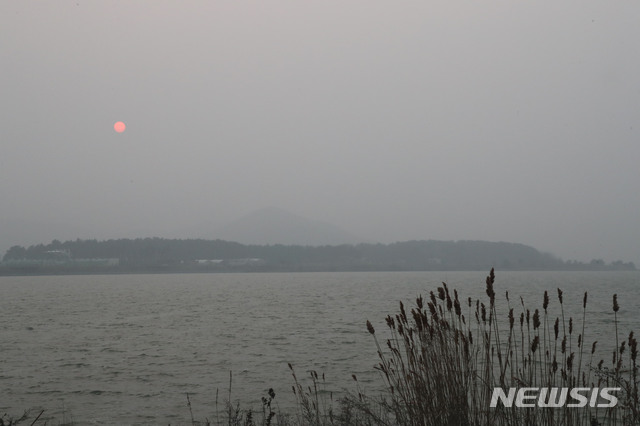 【서울=뉴시스】김진아 기자 = 4일 미세먼지가 기승을 부리고 있는 가운데 인천 옹진군 백령도 담수호에 미세먼지가 뿌옇다. 2019.03.04. (사진=옹진군청 제공)