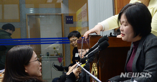 【전주=뉴시스】 김얼 기자= 65세 이상 중증장애인 활동보조인 지원 현실화 촉구 기자회견이 1일 전북 전주시 전북도청 브리핑룸에서 실시된 가운데 최영심 전북도의원(정의당)을 비롯한 장애인 인권연대 및 관계들이 기자회견을 갖고 있다. 2019.04.01.