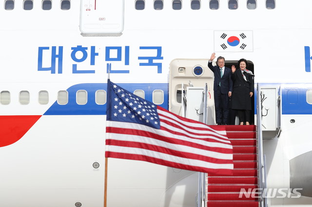 한미정상회담, 미국 도착한 문대통령 내외