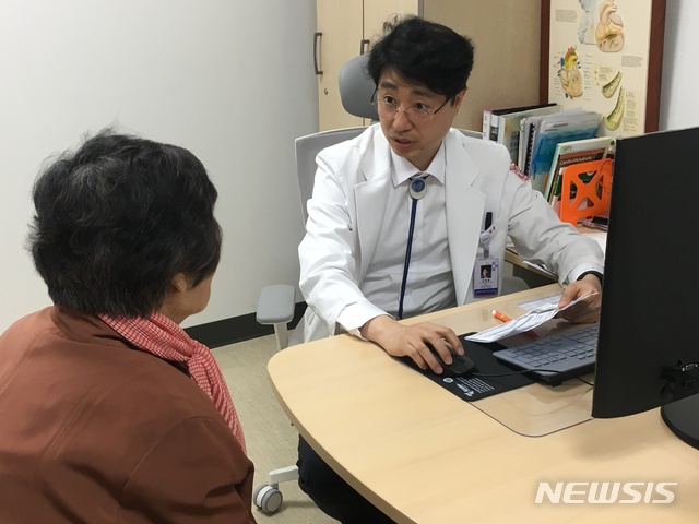 【대구=뉴시스】배소영 기자 = 15일 대구시 달서구 성서로 이전한 계명대 동산병원 개원 첫날 남창욱 심장내과 교수가 진료를 보고 있다. 2019.04.15.