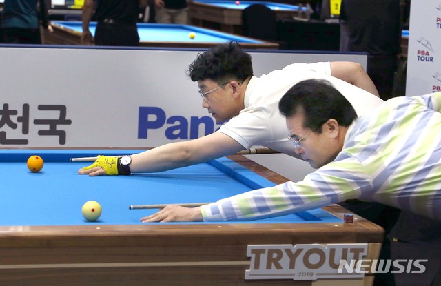 【서울=뉴시스】22일 경기도 일산 엠블호텔에서 열린 PBA 프로당구 트라이아웃에서 김시형과 김석윤이 경기를 펼치고 있다. 2019.04.22. (사진=PBA 제공)