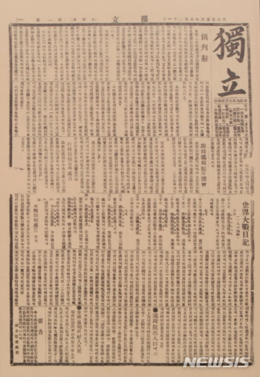 사진은 총영사관 1층 전시홀에서 전시되고 있는 1919년 8월 21일 창간한 임시정부기관지 '독립신문' 창간호의 모습이다. 2019.5.5.